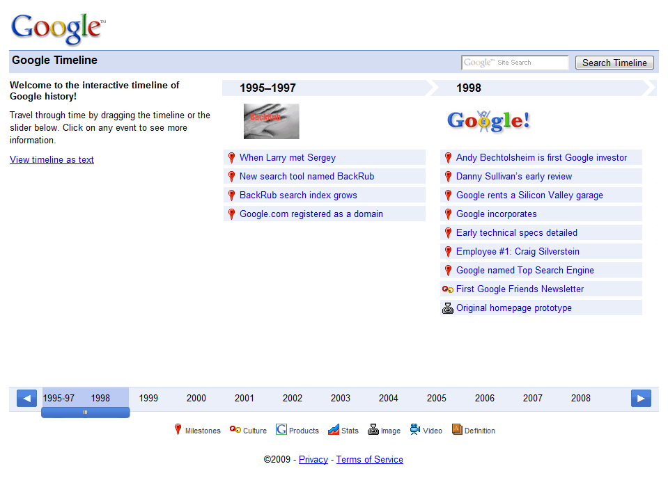Aus der Garage zu einem der mächtigsten Internetkonzerne unserer Zeit - die Geschichte von Google ist zweifelsohne interessant. Einen guten Überblick liefern dabei die Google Timeline und ein Video von Google UK, das erst neulich veröffentlicht wurde.