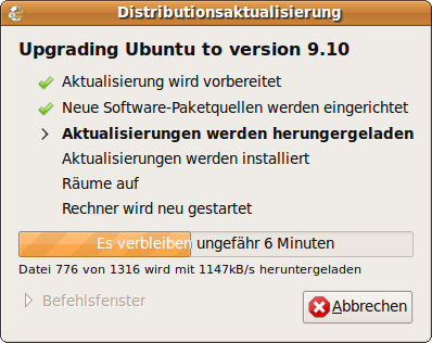 Heute ist Ubuntu 9.10 „Karmic Koala“ erschienen. Das bedeutet, dass man neue Features nutzen kann, zuerst jedoch einmal Upgraden muss. Bei den Meisten sollte dies relativ einfach über die Aktualisierungsverwaltung