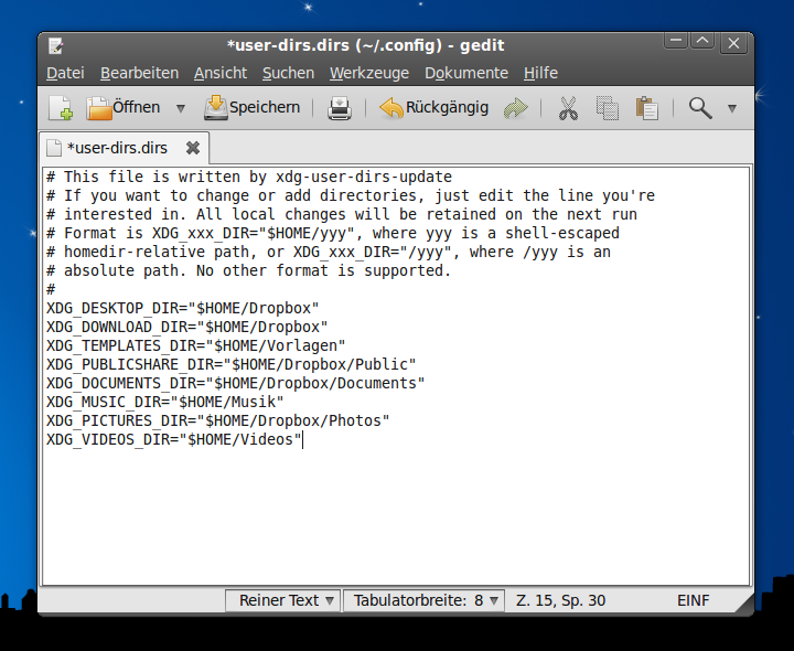 Um die Konfigurationsdatei user-dirs.dirs