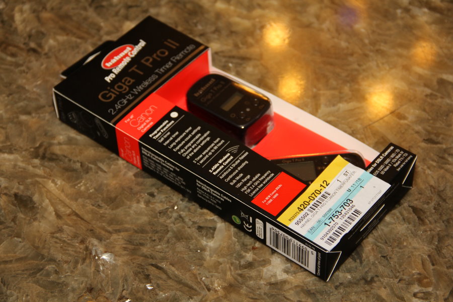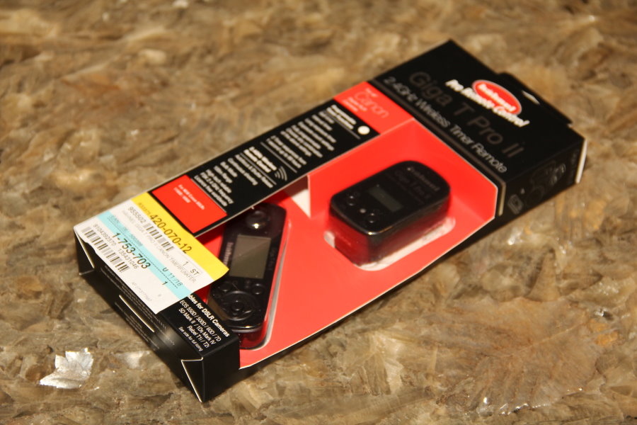Der Lieferumfang des Giga T Pro II besteht aus Sender und Empfänger, Bedienungsanleitung, sowie den zwei notwendigen Batterien (CR2, CR2032). Bei der Variante für Canon liegen zum Anschluss an die Kamera zwei verschiedenen Kabel (E3 und N3 Connector) bei, sodass die meisten DSLRs unterstützt werden. Der Giga T Pro II kombiniert Kabelauslöser mit Funk-Fernauslöser und Timerfunktionen. Theoretisch ist mit ihm drahtlos eine Reichweite von bis zu 100 Metern möglich. In der Version II sind schnellere Serienaufnahmen möglich, es gibt einen separaten Ein/Aus-Schalter und die Möglichkeit, zwei Timer ineinander zu verschachteln.