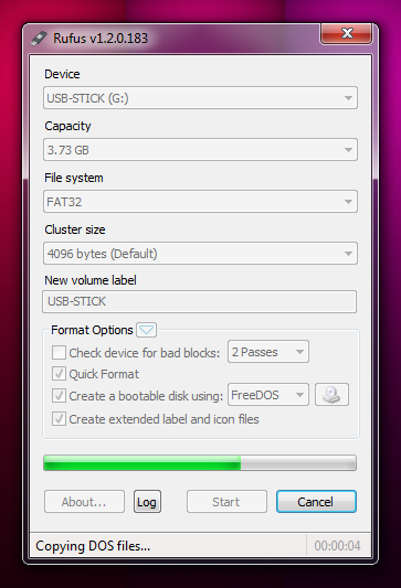 Anschließend wird der Stick formatiert und die entsprechenden Dateien darauf kopiert, was im Vergleich zu anderen Tools ziemlich schnell geht. Ist der Vorgang abgeschlossen, muss man den Stick beim Starten nur noch als Startmedium auswählen oder die Boot-Reihenfolge entsprechend anpassen.