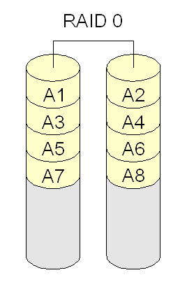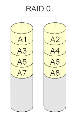 Die zu speichernden Daten werden ohne Redundanz auf mehrere Festplatten verteilt.