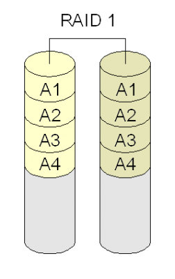 Um eine höhere Daten- und Ausfallsicherheit zu gewährleisten verwende ich RAID. Dies dient zur Zusammenfassung mehrerer physischer Festplatten, was eine höhere Datensicherheit beim Ausfall einzelner Festplatten gewährleistet und/oder einen größeren Datendurchsatz erlaubt. Es gibt verschiedene RAID-Level, hier die wohl am Häufigsten verwendeten: