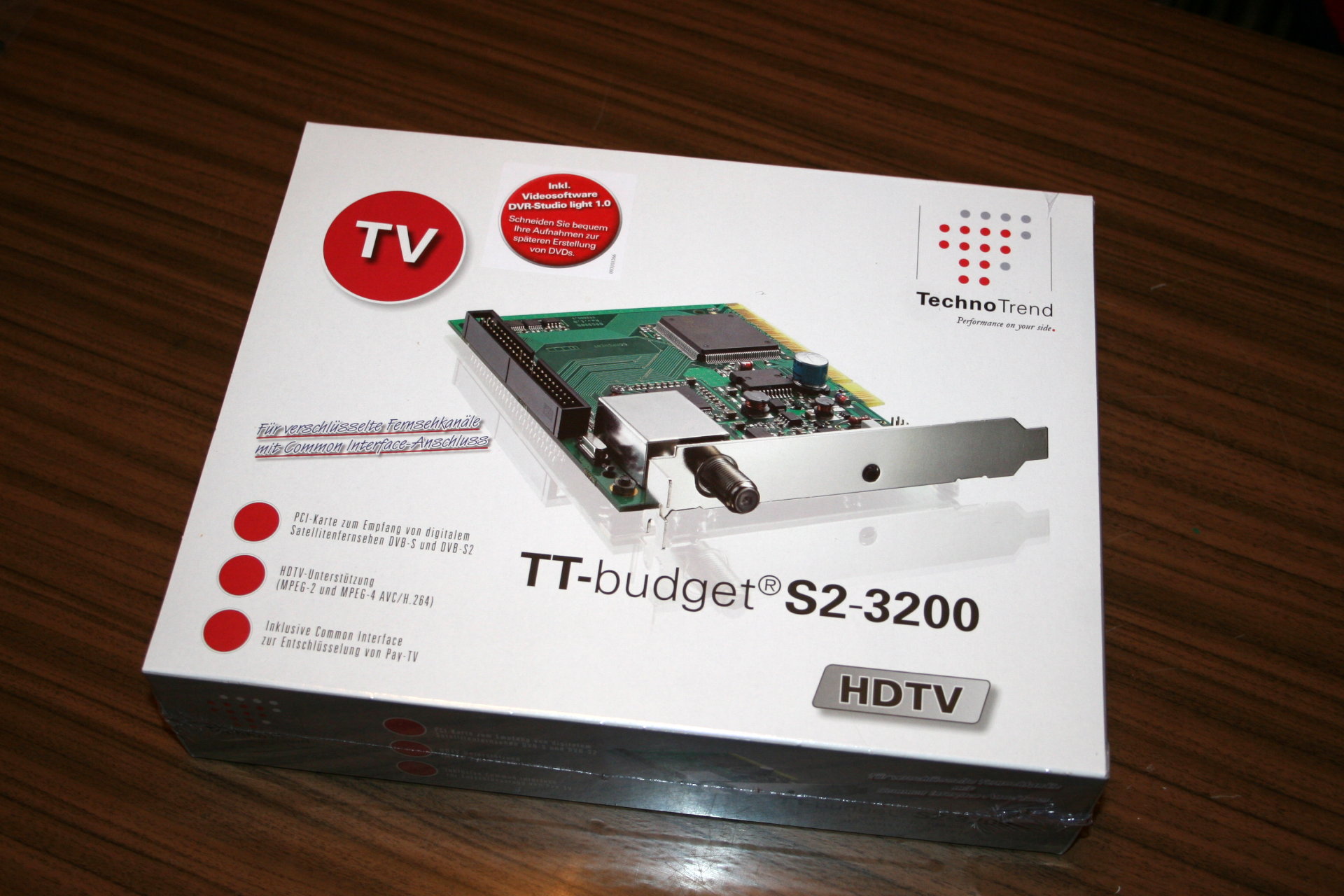 Zu dieser Grundausstattung kommt noch die DVB-S2 TV-Karte TechnoTrend S2-3200 mit Fernbedienung und Budget-CI für 89,69 € aus dem DVBShop und Ubuntu 8.04 LTS.