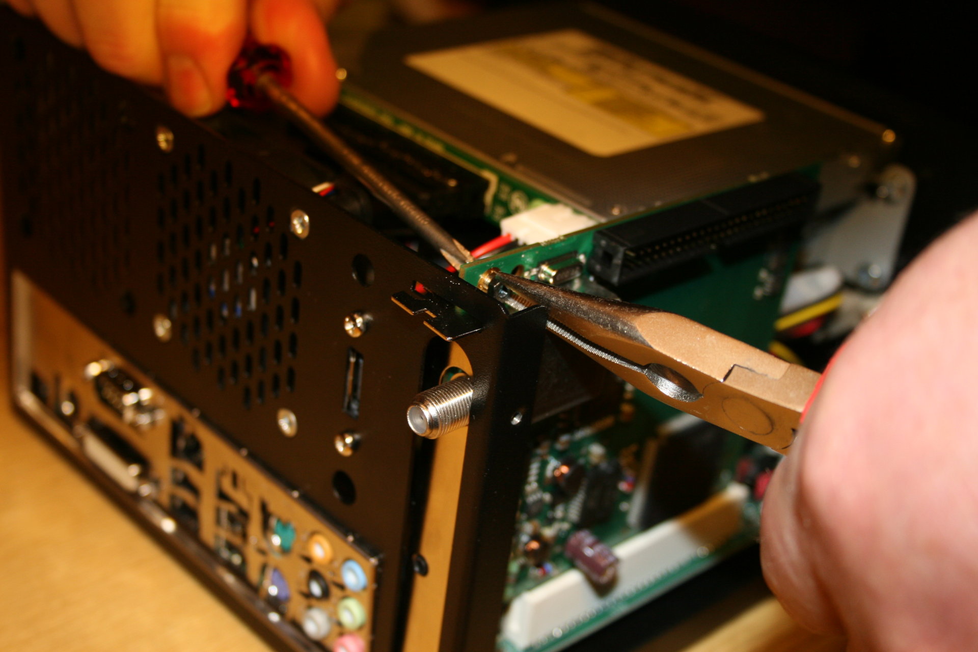 Der Einbau der TV-Karte ist zwar ein wenig knifflig, lässt sich aber wie in der Fotostrecke zu sehen bewältigen.