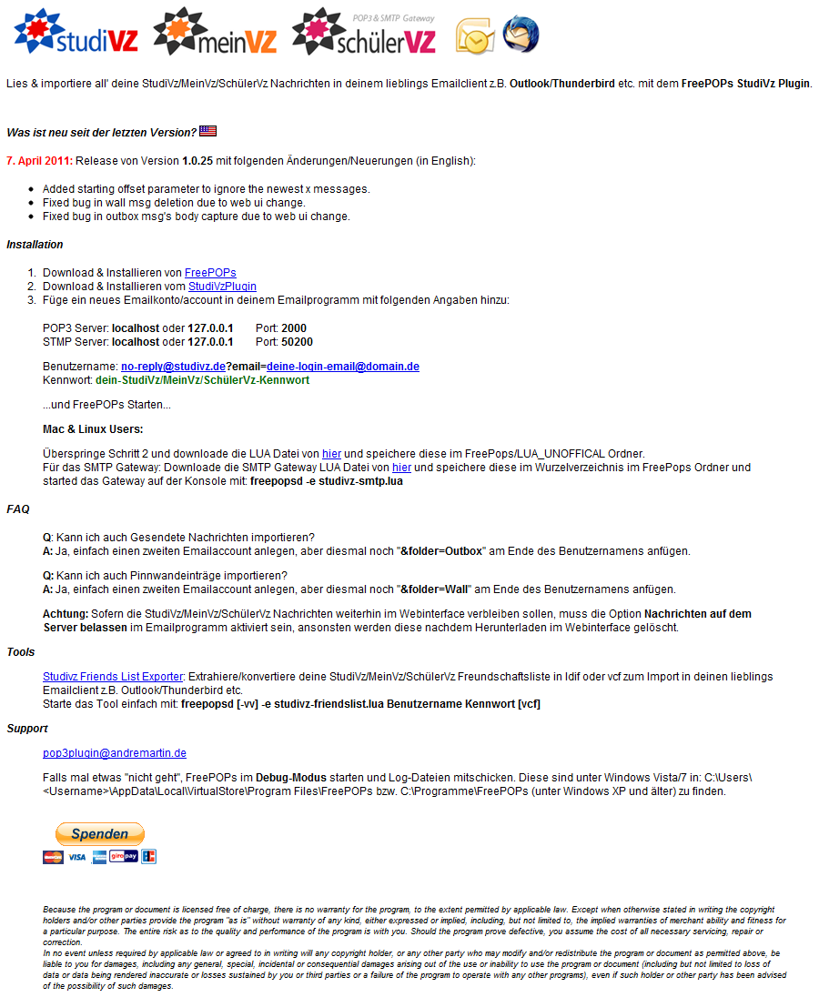 Mithilfe des POP3-Daemons FreePOPs kann man über HTTP auf Webmail-Angebote zugreifen, die keinen POP3-Server anbieten. Das FreePOPs StudiVz Plugin von André Martin macht dies auch für die VZ-Netzwerke möglich. Prinzipiell könnte man hierfür jedes beliebige Email-Programm verwenden, ich bevorzuge zum Archivieren jedoch die Freeware MailStore Home, die vor kurzem in Version 5.0 erschienen ist. Vorteile sind beispielsweise, dass man schon bei der Installation die Möglichkeit hat, eine portable Version zu erstellen, und die archivierten Daten so wesentlich flexibler verwalten kann.