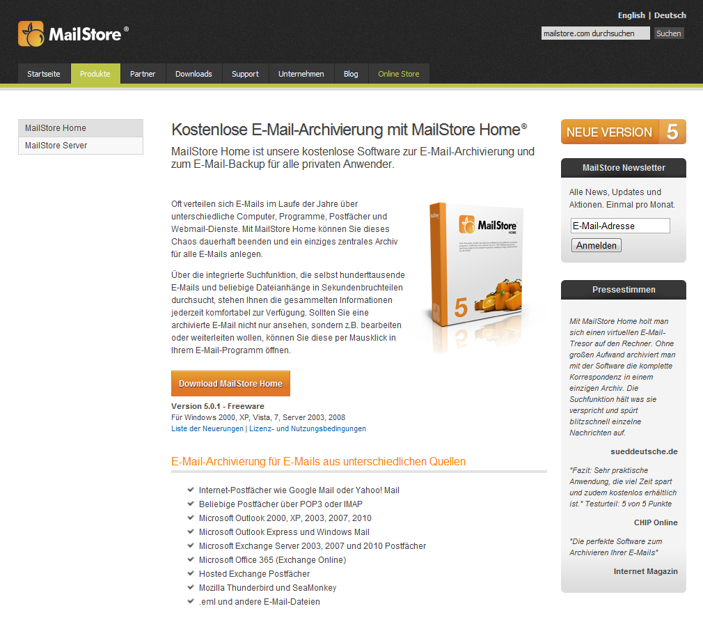 Nachdem Outlock, Thunderbird und Operas internet Mail-Client alle gestreikt haben, dachte ich mir ich wage noch einen letzten Versuch mit deinem MailStore. Und siehe da, er ist grad dabei alle Nachrichten zu archivieren; Klappt einwandfrei! Danke für diese Seite 🙂