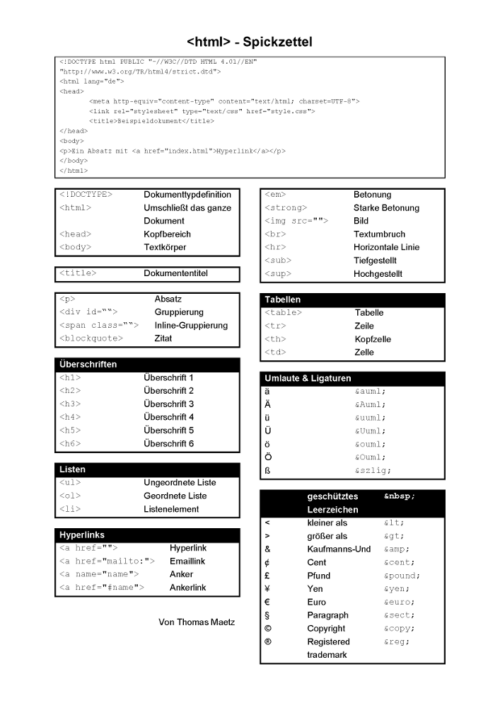 Passend dazu, gibt es auch einen CSS-Spickzettel für Anfänger.