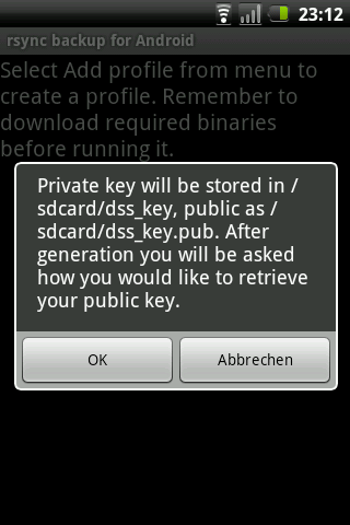 Nach der Installation, muss man in der App noch die benötigten Dateien herunterladen, bevor man anschließend das Schlüsselpaar generiert, mit dem später ein Login ohne Passwort am SSH-Server möglich ist.