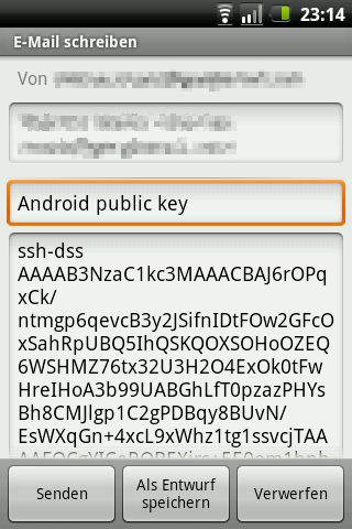 abgelegt. Zudem hat man die Möglichkeit, sich den Public key zuzuschicken.