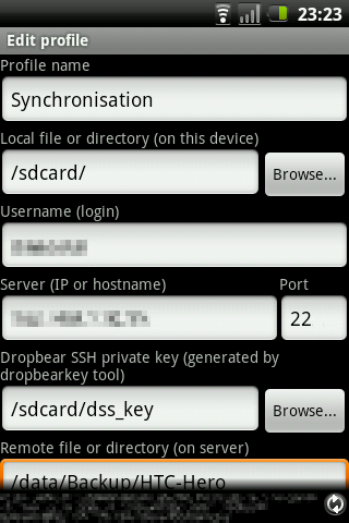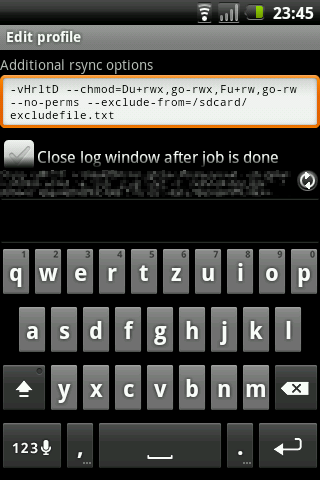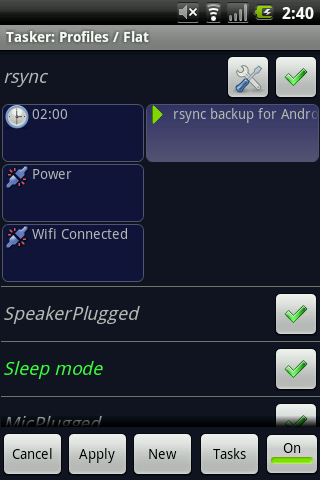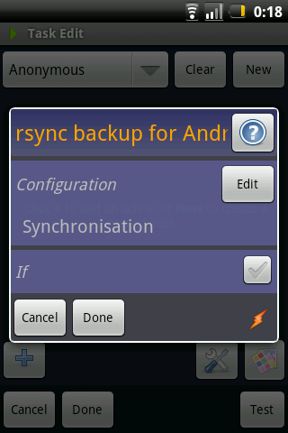 Meine Konfiguration ist so eingestellt, dass sie jeden Tag um 2 Uhr, wenn das Smartphone aufgeladen wird und mit dem WLAN verbunden ist, rsync mit dem gewählten Profil ausführt.