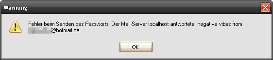 Fehler beim Senden des Passworts. Der Mail-Server localhost antwortete: negative vibes from xxx@hotmail.de