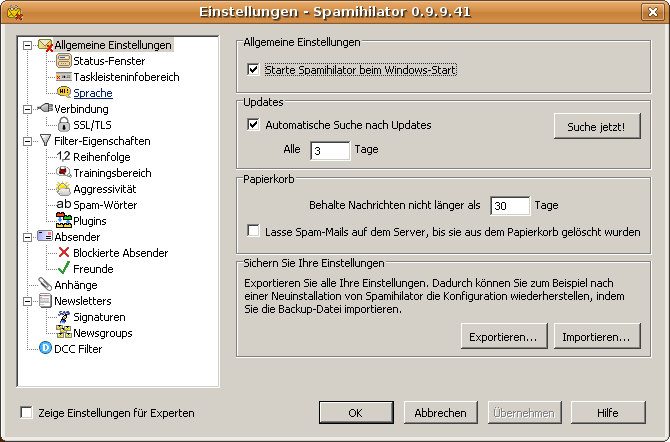 Daher ist es am einfachsten, im eigenen Email-Programm sowie in den Spamihilator Einstellungen die Ports zu ändern. Z.B. von 110 zu 11000.