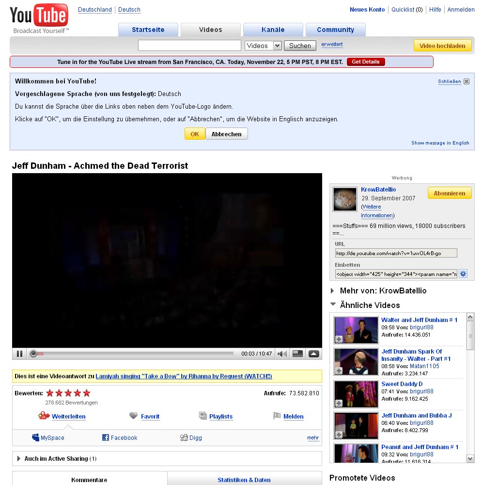 Nachdem mir gestern beim Besuch von YouTube aufgefallen war, dass alle Videos in 16:9 mit schwarzen Rändern angezeigt wurden, war es heute umso verwunderlicher, dass alles wie gewohnt in 4:3 zu sehen war.